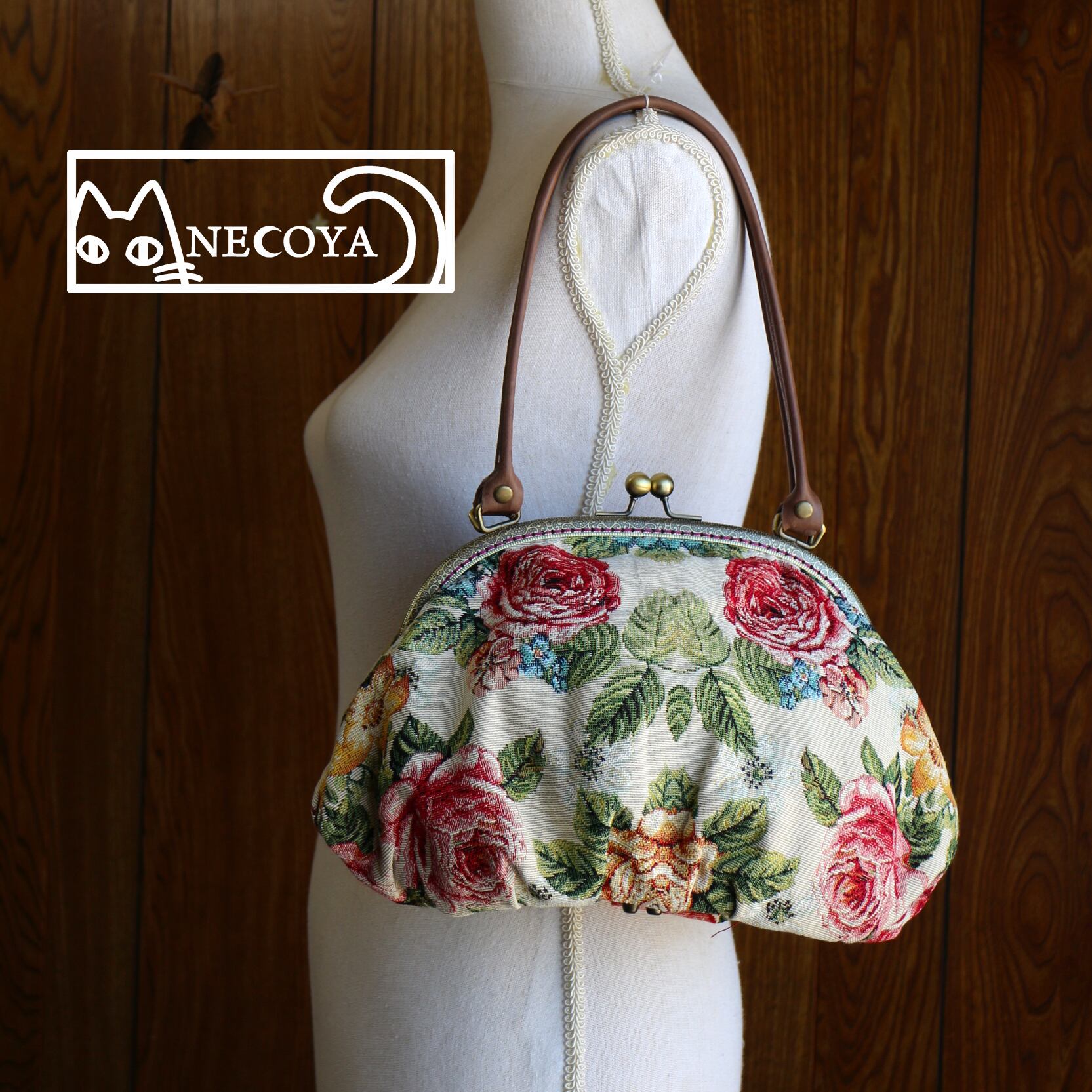 フランスから直輸入されたゴブラン織りの布地を使って制作した、ふんわりしたシルエットがかわいらしいがまぐちバッグです。