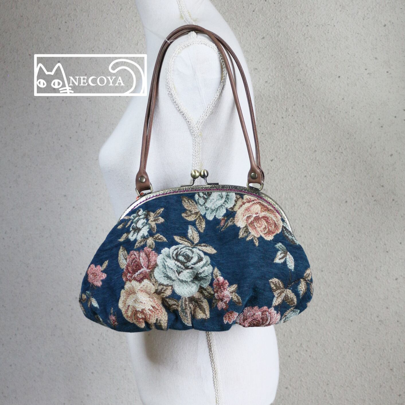 ふんわりがまぐちバッグ ゴブラン・青(薔薇いっぱい5)