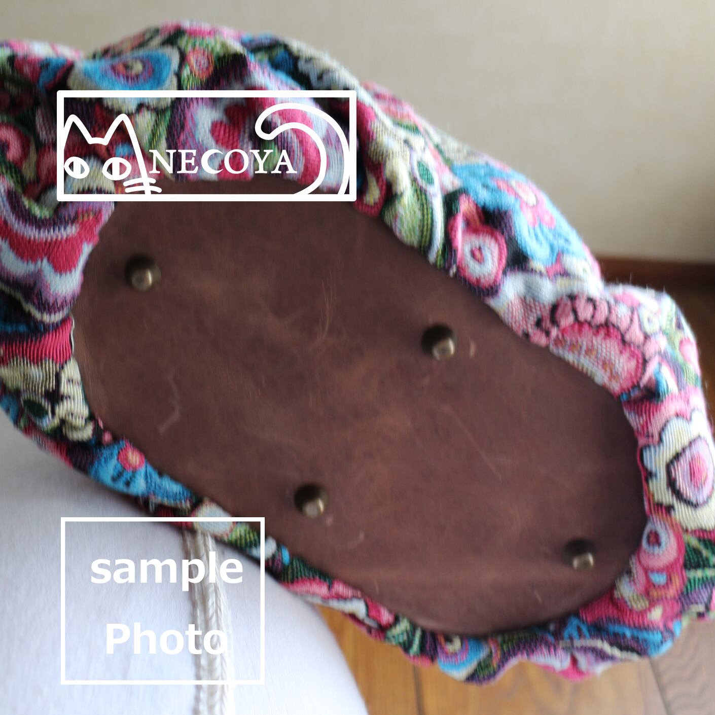 バラ模様のゴブラン織りの布地と本革(持ち手と底)を使用して制作しています。